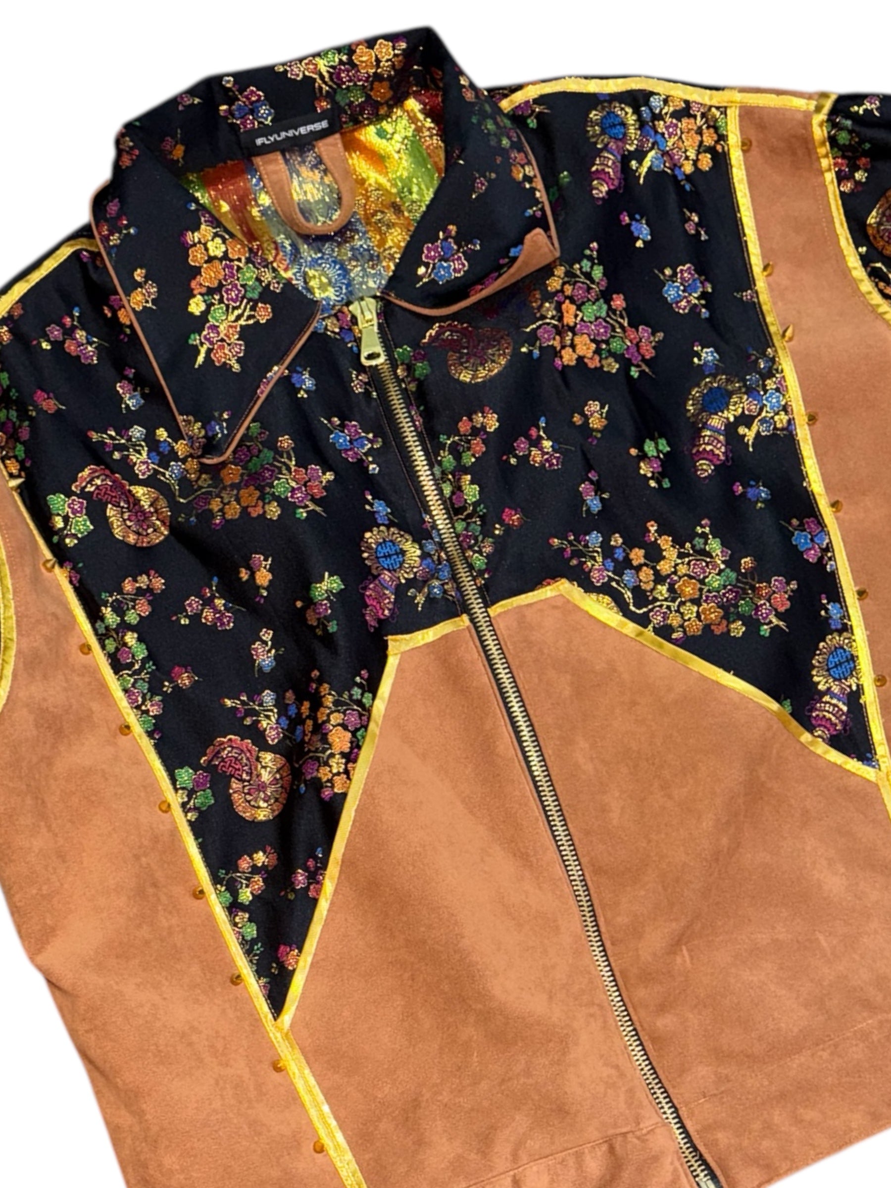 Inspired by traditional Japanese brocade, this jacket brings timeless embroidery into bold, modern form