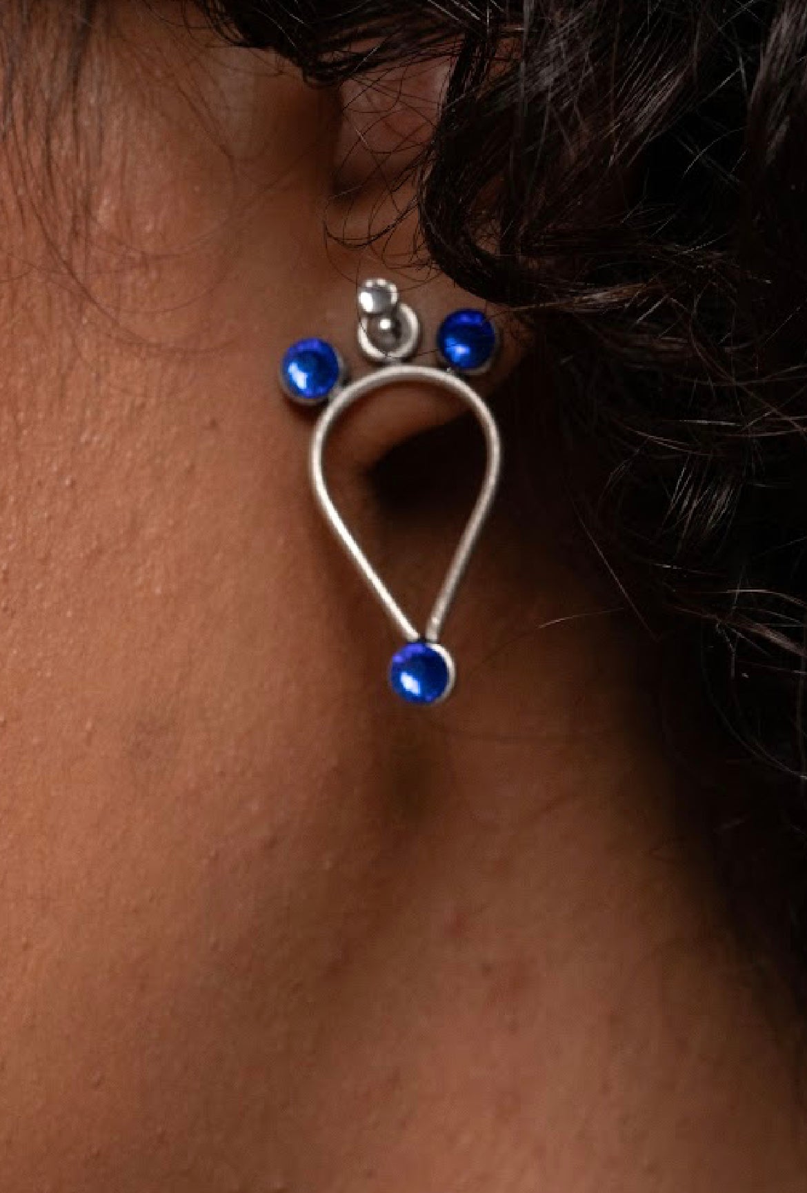 Luxury Earrings made of a Nickel free Metal. The Metal is stoned with Three Royal Blue Crystals and one White Crystal that is Manufactured by Swarovski