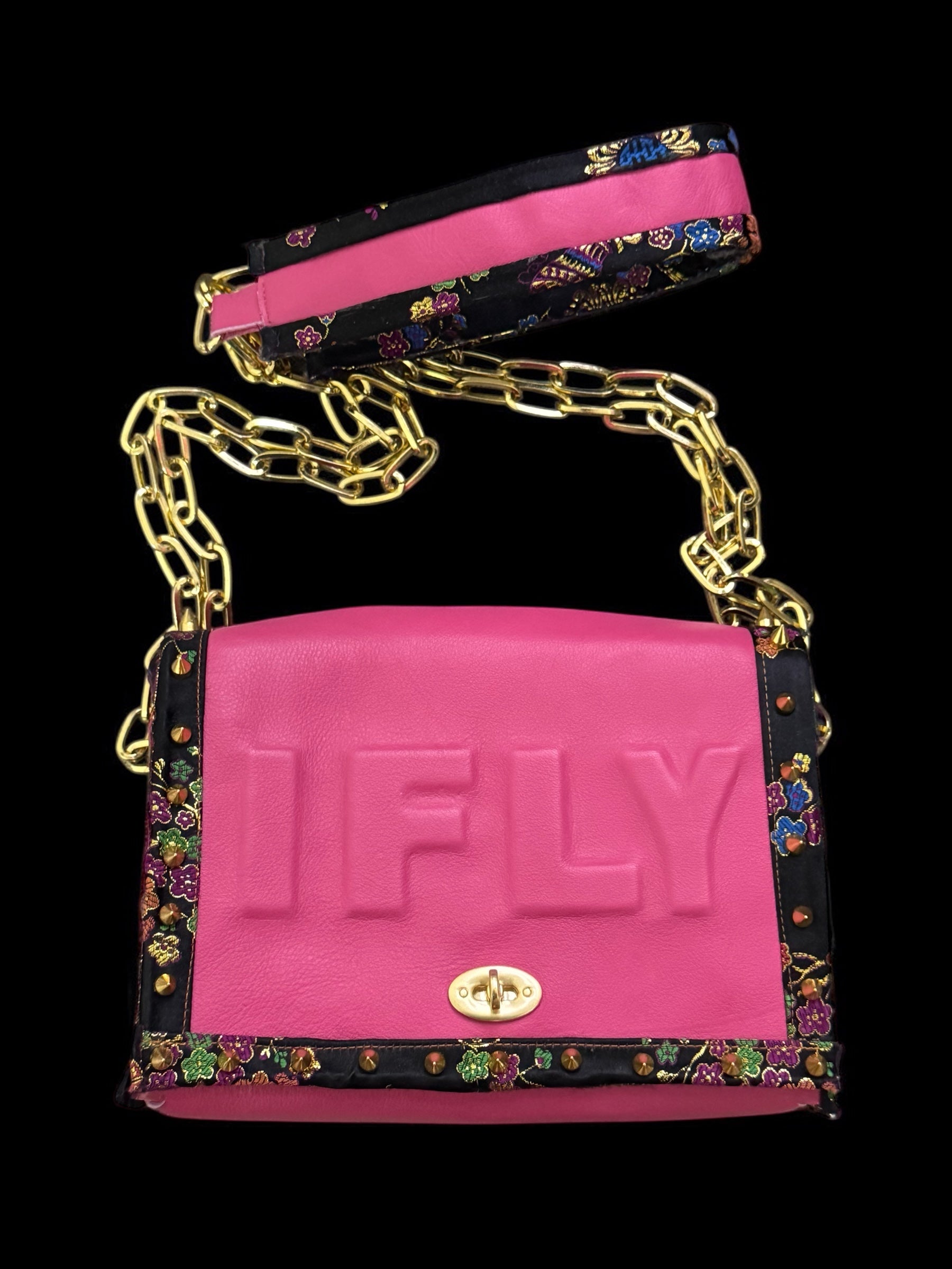 Ginuwine Leather handcrafted Shoulder bag with lock and Chain Handle. Designed to POP with style.